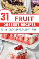 This roundup features easy fruit desserts made with simple ingredients, including dump cakes, upside-down cakes, cobblers, puff pastry desserts, poke cakes, bars, and no-bake options. Most of these recipes use shortcuts like cake mix, canned fruit, or store-bought pastry so you can make dessert without spending all day in the kitchen.
