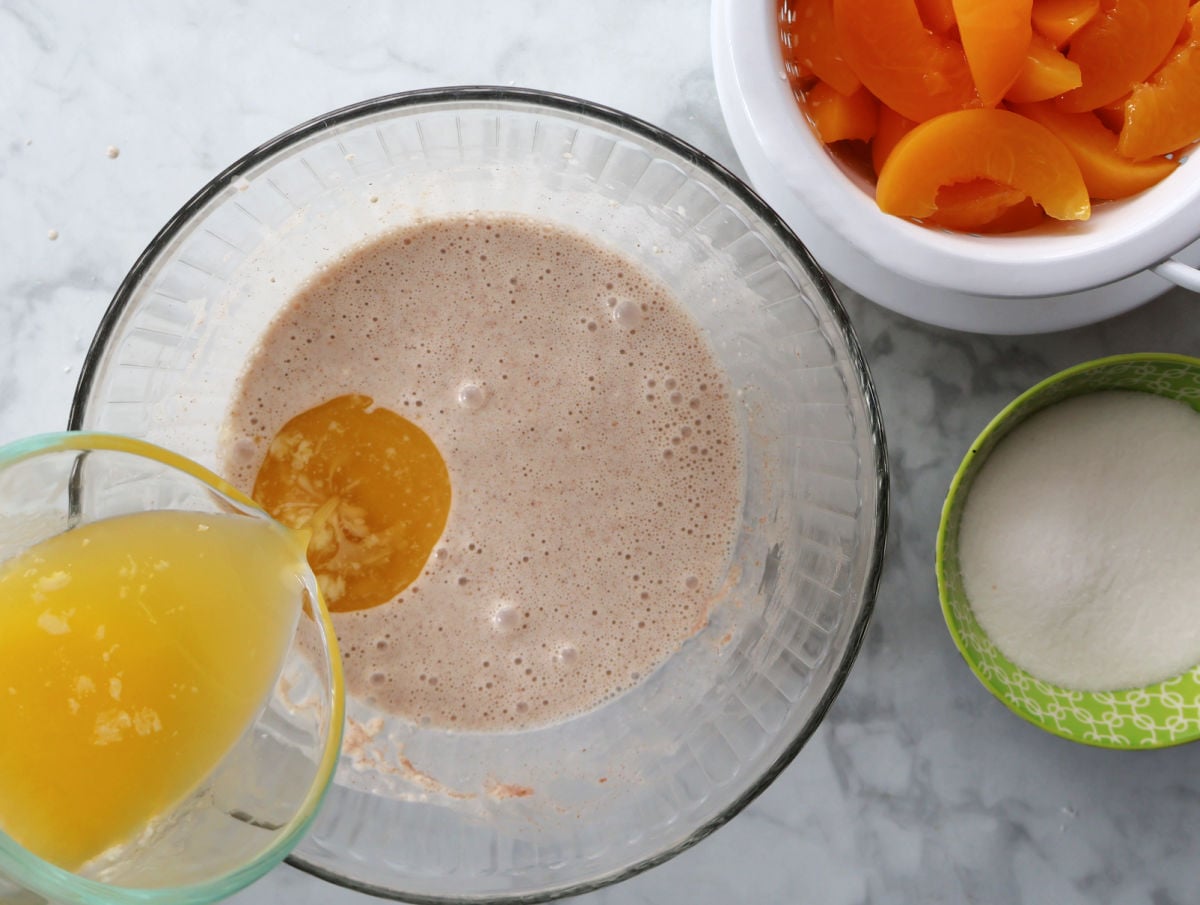 Spoon the peaches and syrup evenly over the batter. Do not stir.