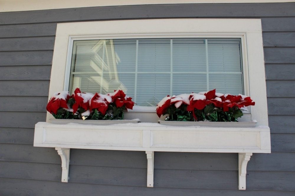 Here is another window box with more of a red theme - pretty red poinsettias!