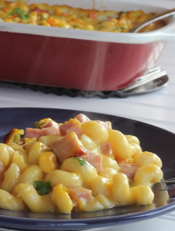 My family liked this recipe because they didn't want to have the ham slices as leftovers. When it's cut up in a cheesy noodle casserole, it doesn't feel like leftovers. It feels like a whole different meal.