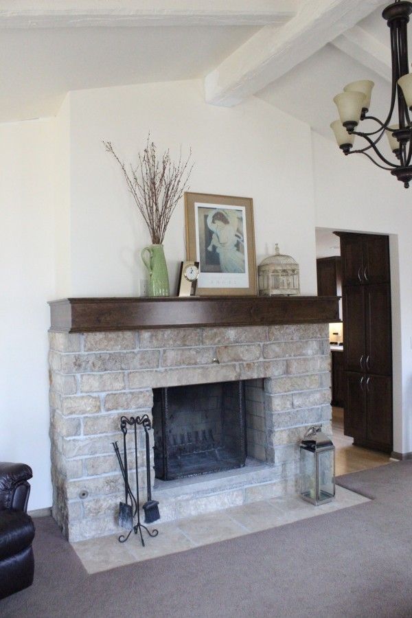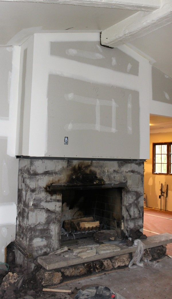 The fireplace looked way better once the rocks were off! Even with the rocks off, it was a much cleaner, more modern look!