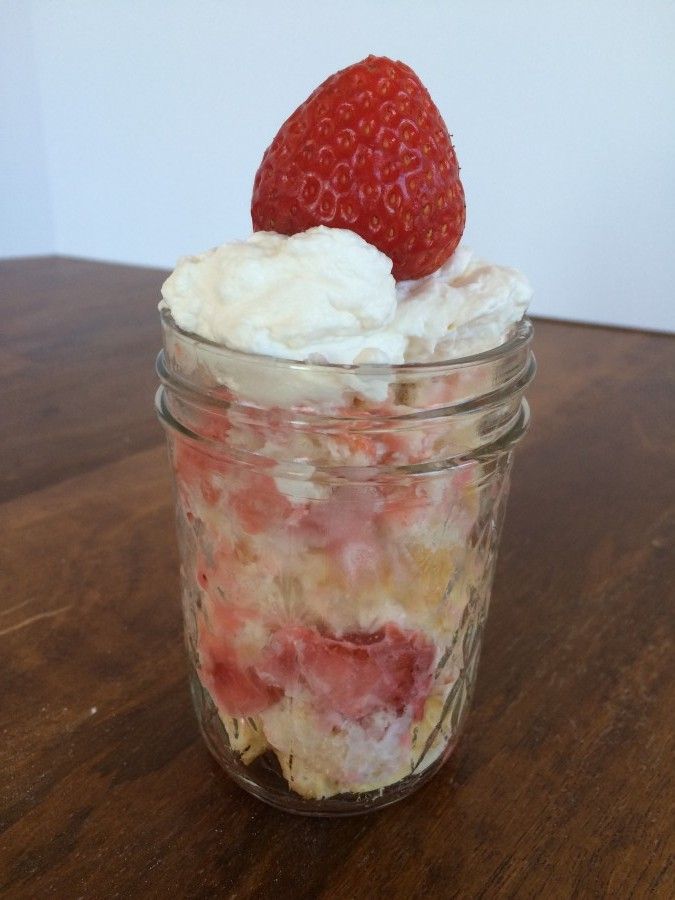Mason jar to the rescue! I just spooned chunks into a mason jar, then topped it with whipped cream and a strawberry.