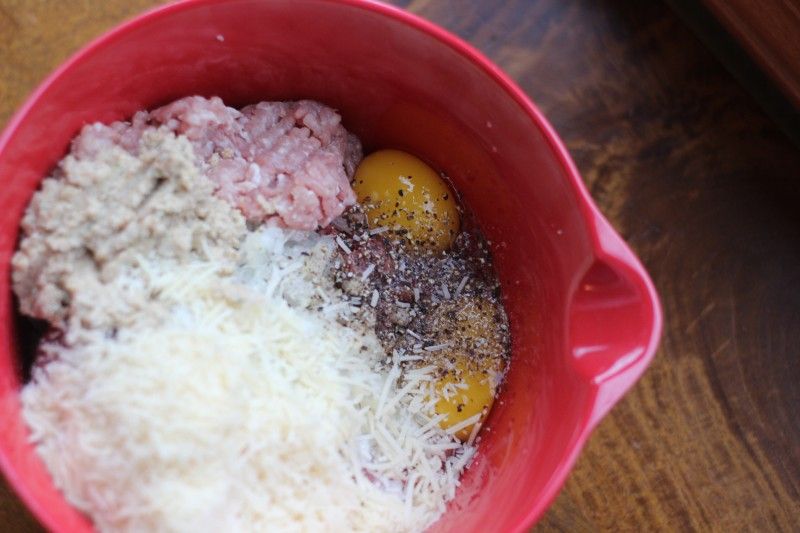 Add all meatball ingredients into the bowl and mix well.