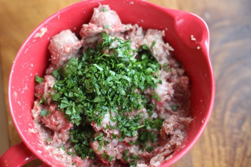1. Prepare all the meatball ingredients. Finely chop onions, fresh parsley, and mince garlic.