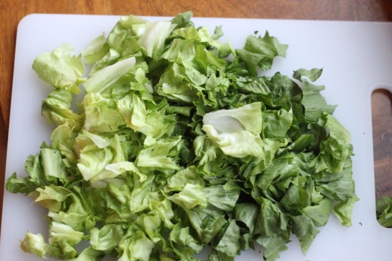Chop the escarole into bite-sized pieces (about 1-inch x 1 inch-ish). You know, I had the hardest time finding escarole in the grocery store. For some reason, I couldn't find it the first time I tried to buy it. It would have saved me a lot of time if someone would have only told me that escarole is a LETTUCE!! Yes, it's lettuce. But, don't substitute another type of lettuce 'cause it won't have the same texture. TRUST me on that one!!