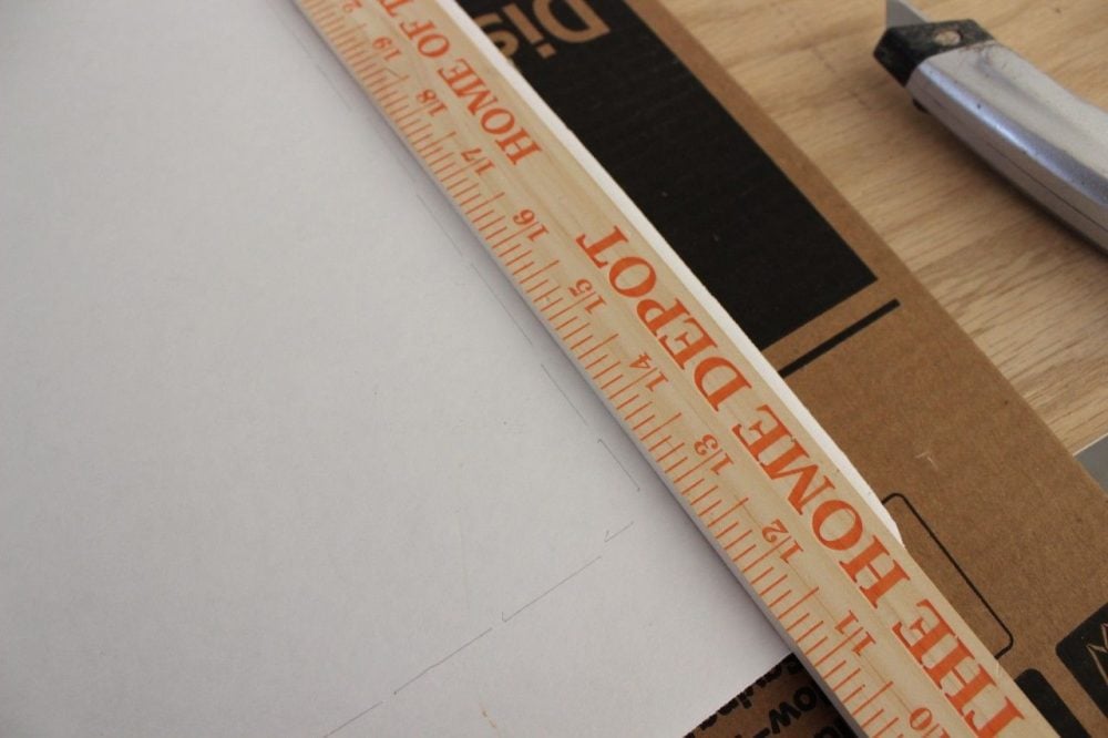 I used an exacto knife against a ruler to cut out the foam board frame. Then I stapled the white foam board frame onto the wooden frame. I made a point of cutting the foam board frame a little smaller than the wooden frame since I didn't want it to show when it was on my wall.