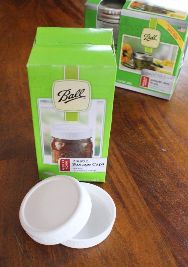 Have you noticed the white lids I use? I found these plastic lids and LOVE them! They are easier and better to use when using mason jars for storage.