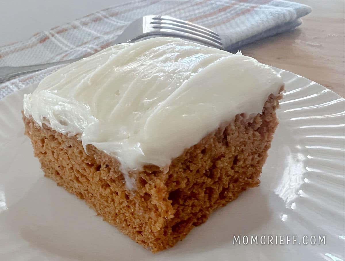 If you love fast fall desserts, this one is unbeatable. With just pumpkin and spice cake mix, it bakes into a soft, warmly spiced cake that tastes like a fall festival treat. The pumpkin adds richness while the cake mix brings all that cozy cinnamon flavor. It’s perfect when you want something homemade without fussing with extra ingredients. Serve it with store-bought cream cheese icing or powdered sugar for an easy and inexpensive finish.
