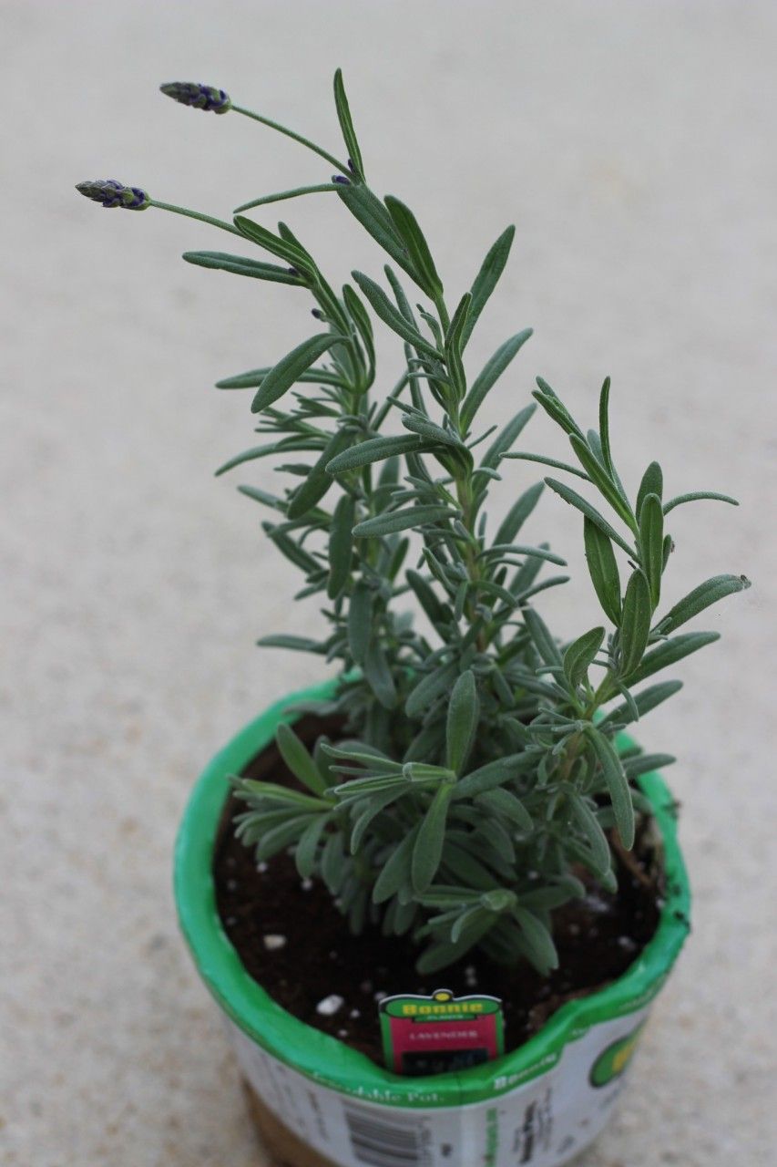 I also had this lone lavender plant. I don't know why I had it. My guess is I grabbed it thinking it was rosemary? Hmmmm. Oh well, it adds a little height and texture and the purple lavender flowers will look wonderful in the red pot.