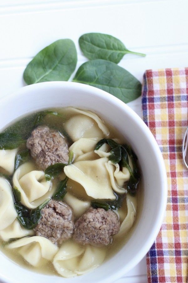 Tortellini Meatball Soup with Spinach